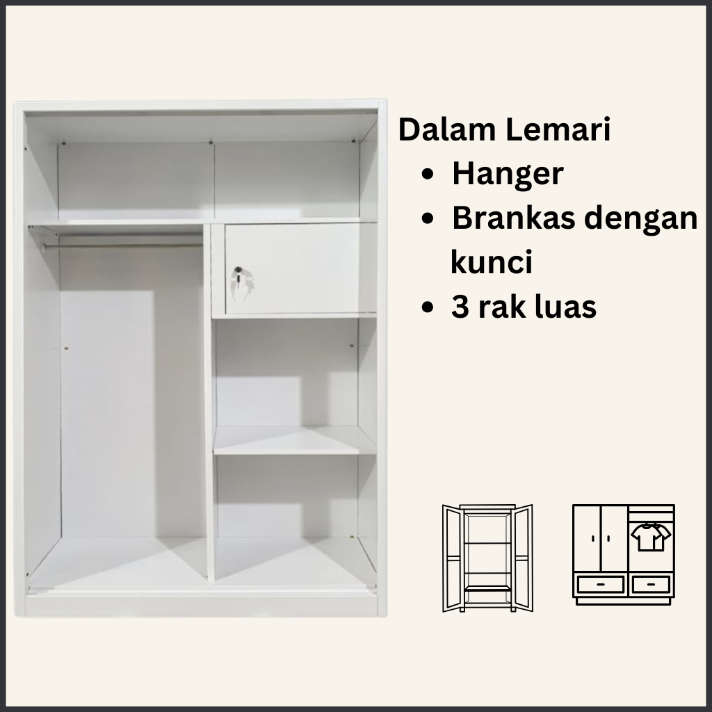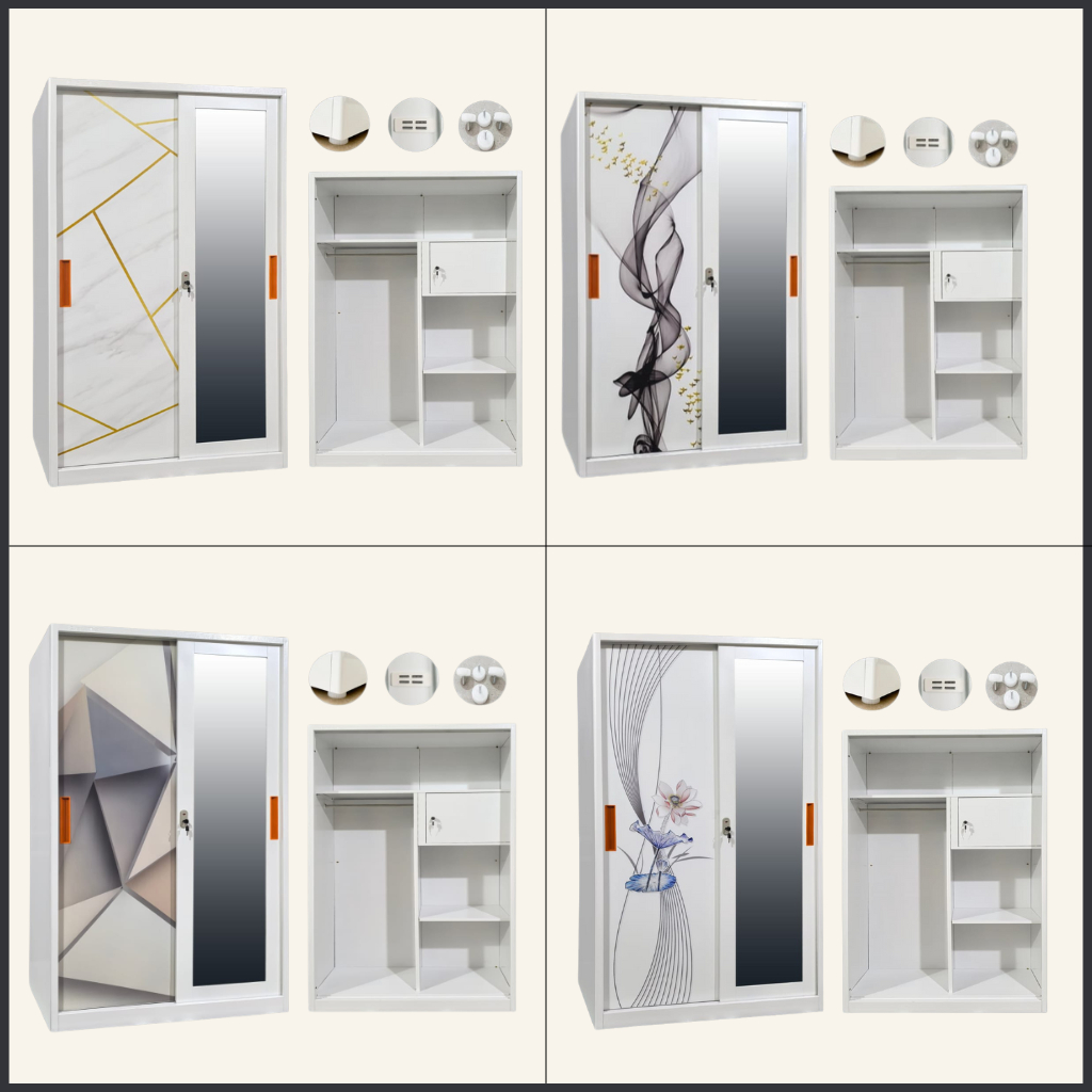 Lemari Pakaian 2 Pintu Besi Sliding Cermin | Lemari Baju Sleding Besi