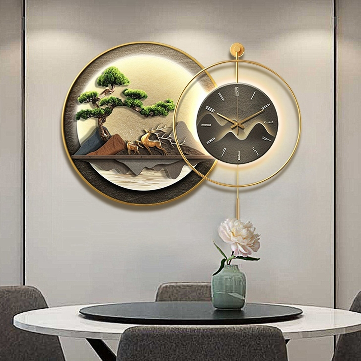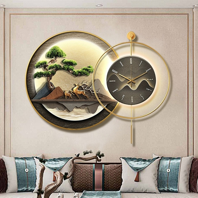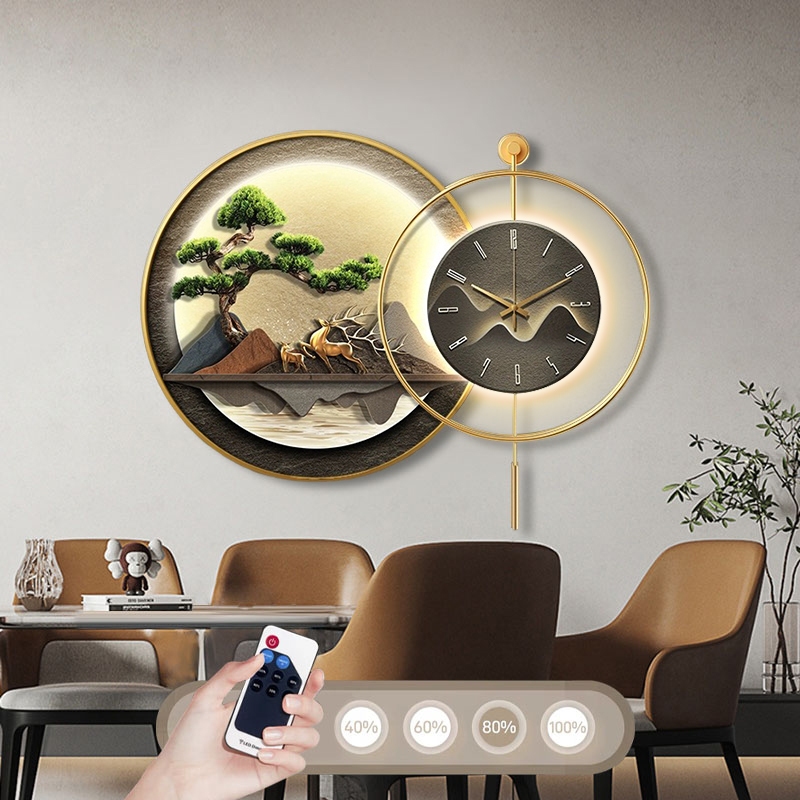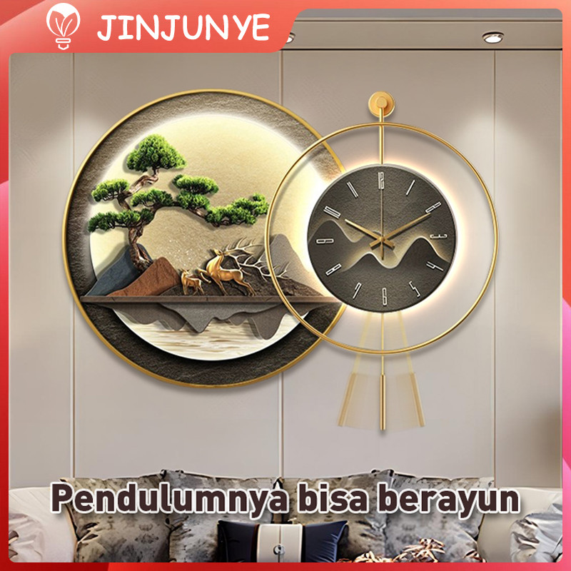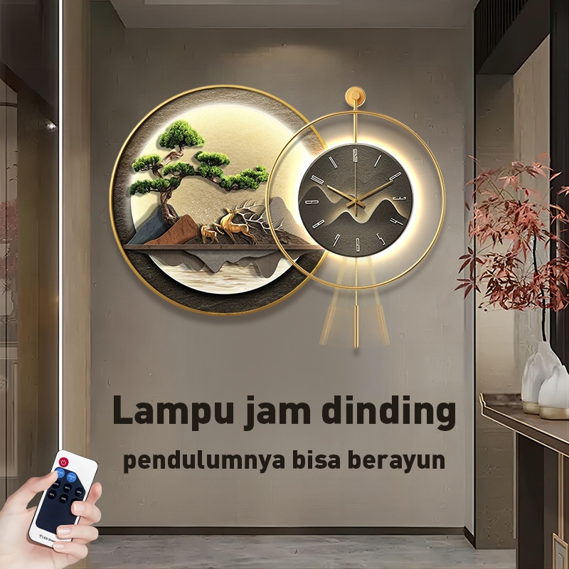 Jam Dinding Ruang Tamu Motif Rusa Gold Lampu Dinding Modern Remote Control 70*50cm LED Lampu Hiasan Dinding Ruang Tamu L