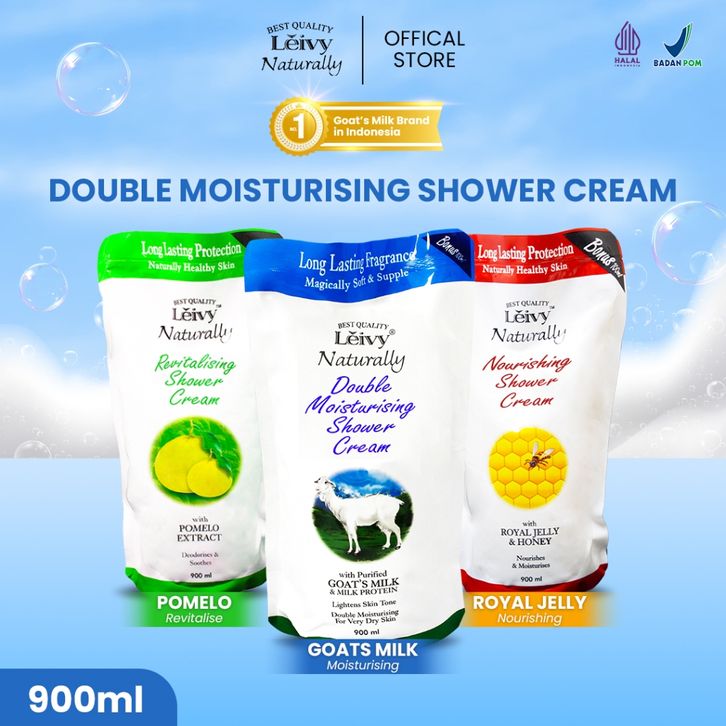 Leivy Body Wash Shower Cream Sabun mandi - Goat's Milk 900ml Refill