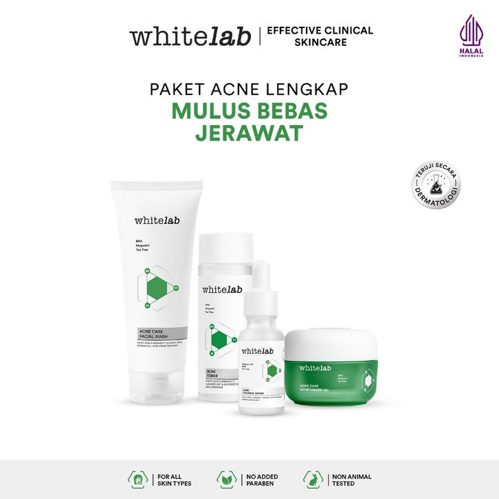 Whitelab 4 pcs Paket Acne - Facial Wash, Toner, Serum, Moisturizer Paket Skincare
