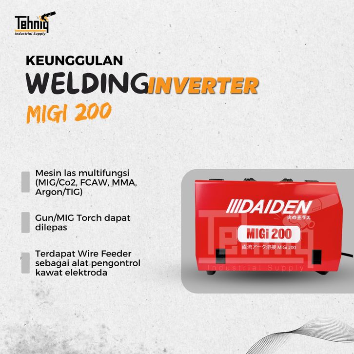 Mesin Las Mig Inverter Welding Machine Daiden MIGi 200 A Gas CO atau Tanpa Gas CO