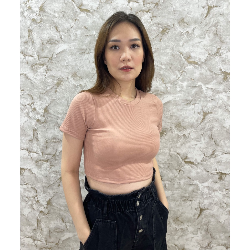 MODAVIE - CLAY Crop Top Korea Knit Crop Tee Korean Style Kaos Wanita