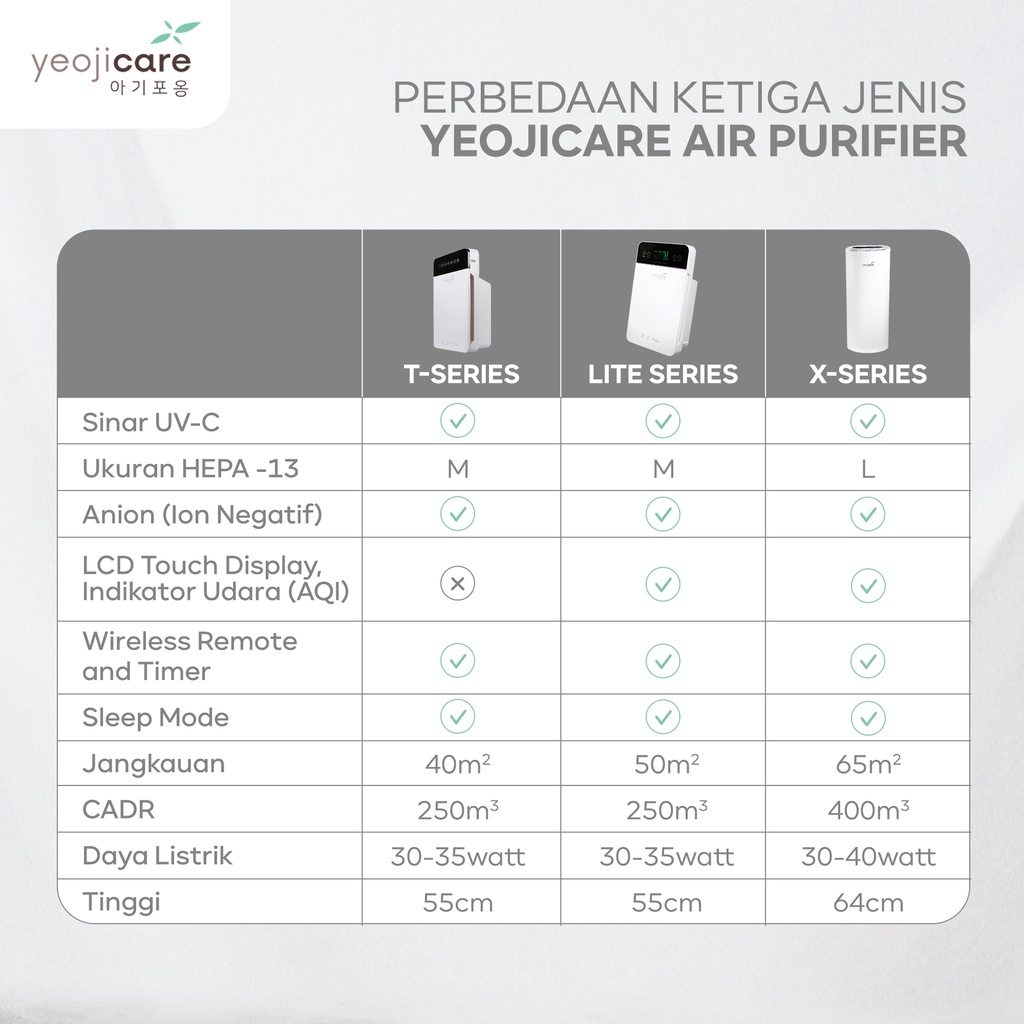 Yeojicare T-Series Air Purifier - HEPA13 UVC Anion Penyaring Udara