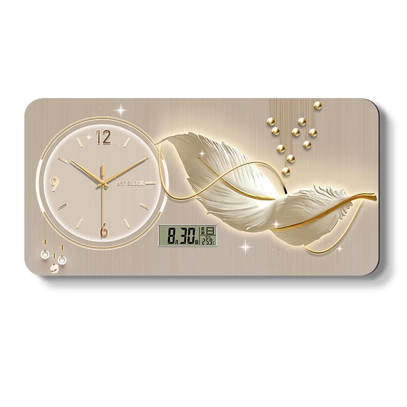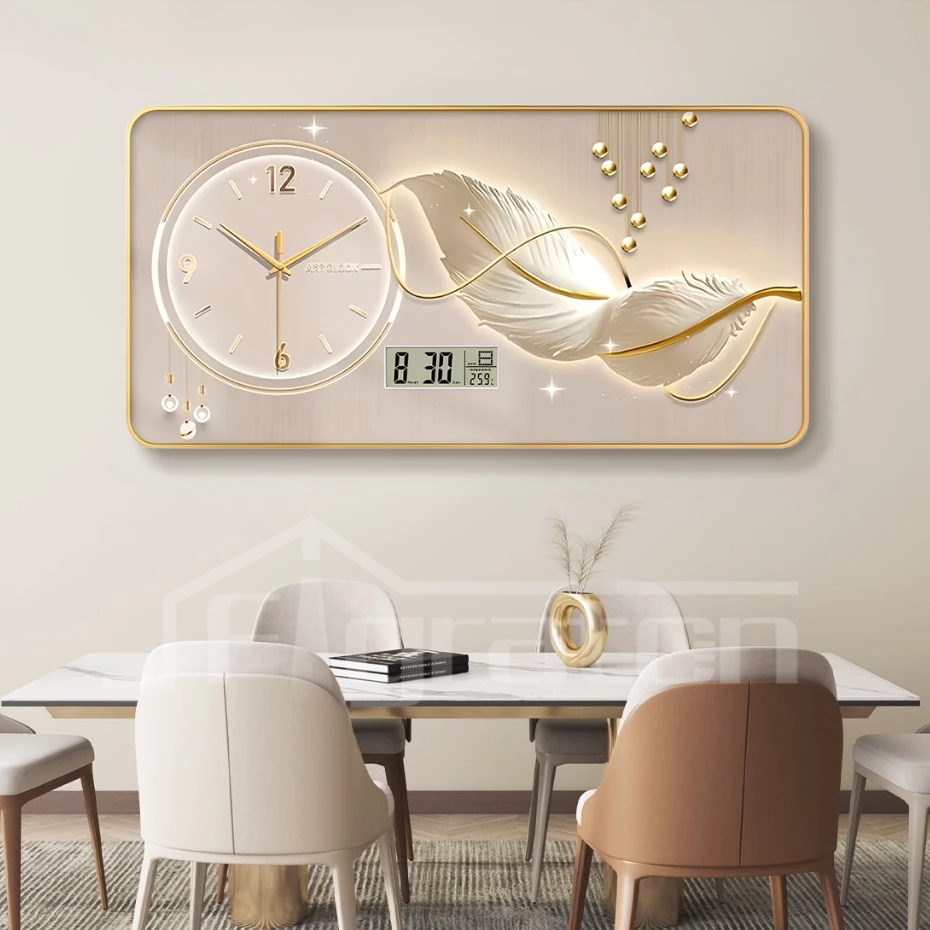 Jam Dinding Ruang makan Mewah Bentuk Bulu Jam Hiasan Dinding Aesthetic 100x50cm Ruang Tamu Lukisan Krystal Porselin Wall