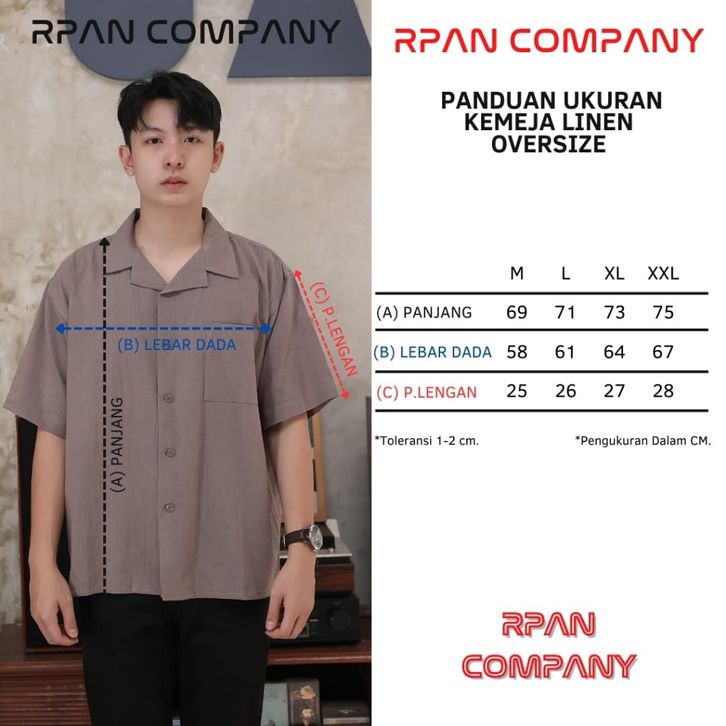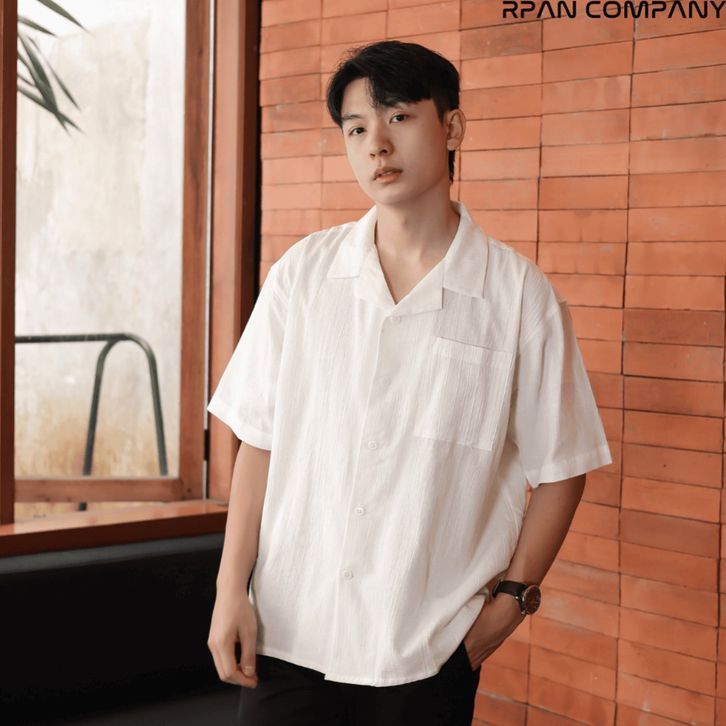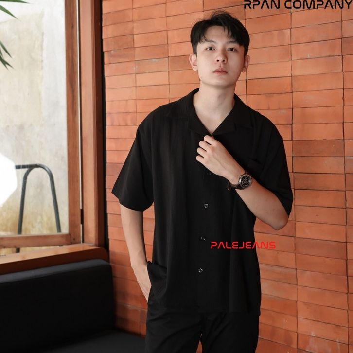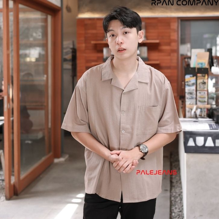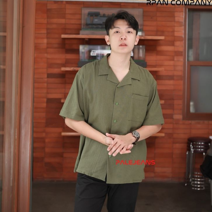 Kemeja Linen Krinkle Oversize Pria/Cuban Bowling Oversized Linen Crinkle Shirt