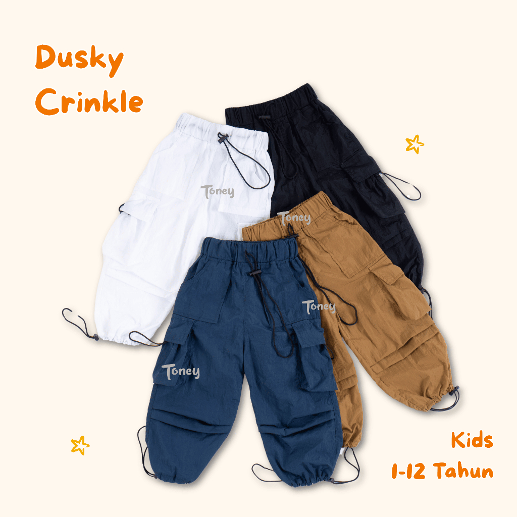 Toney - Celana anak laki-laki perempuan cargo dusky bahan crinkle parasut usia 1-12tahun