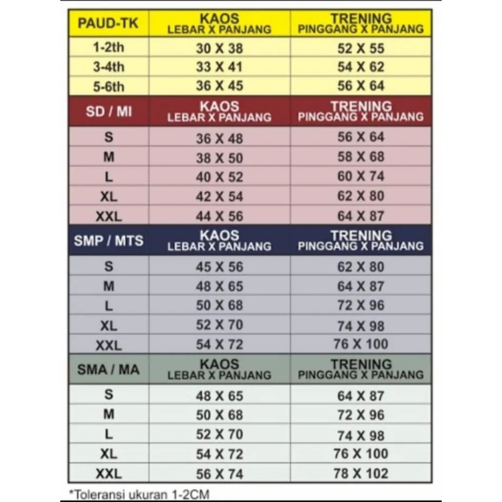 (MIN. ORDER 10PC) BAJU OLAHRAGA SMP / MTS (TK, PAUD, SD, SMP, SMA) BAHAN NYAMAN DIPAKAI HARGA GROSIR