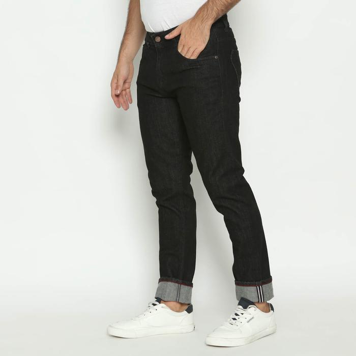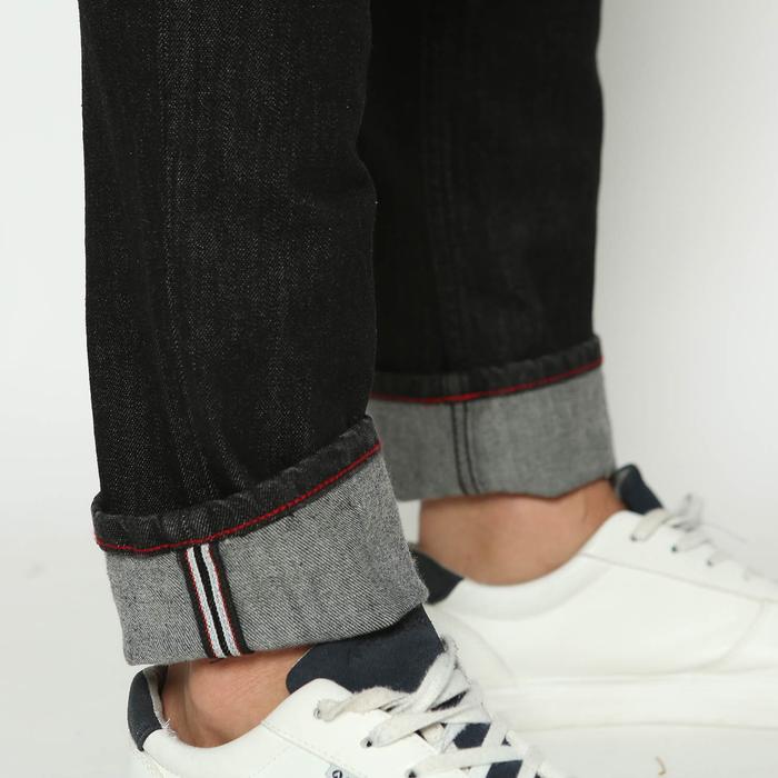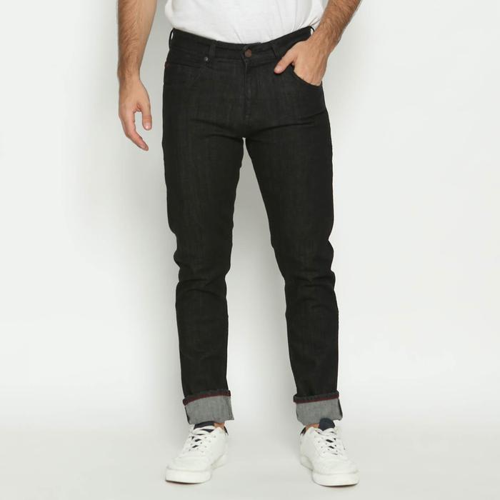 PP 712 Black Slim Fit 12 OZ "Selvedge" Stretch Denim Panjang Hitam Hitam - Black, 33