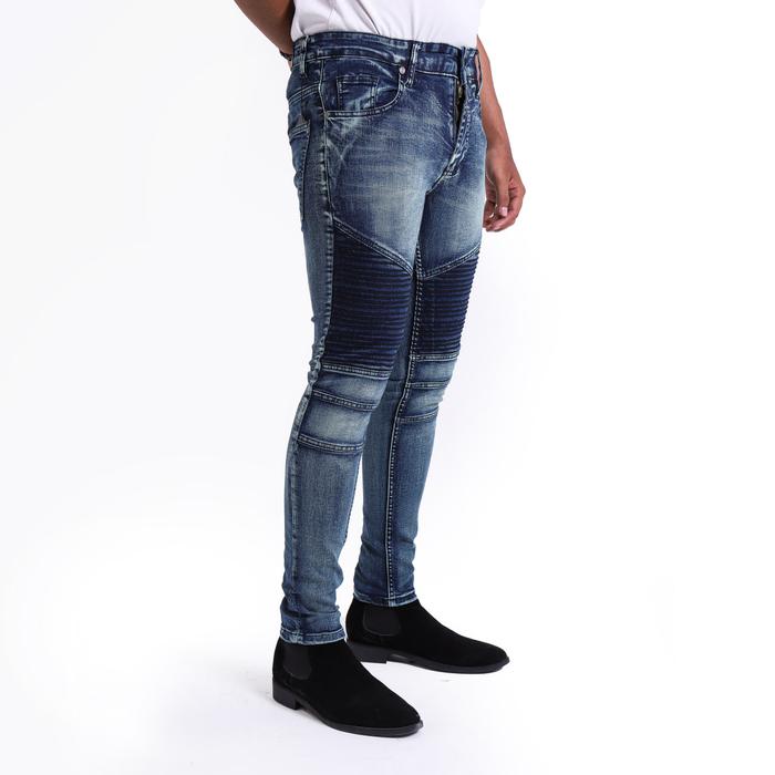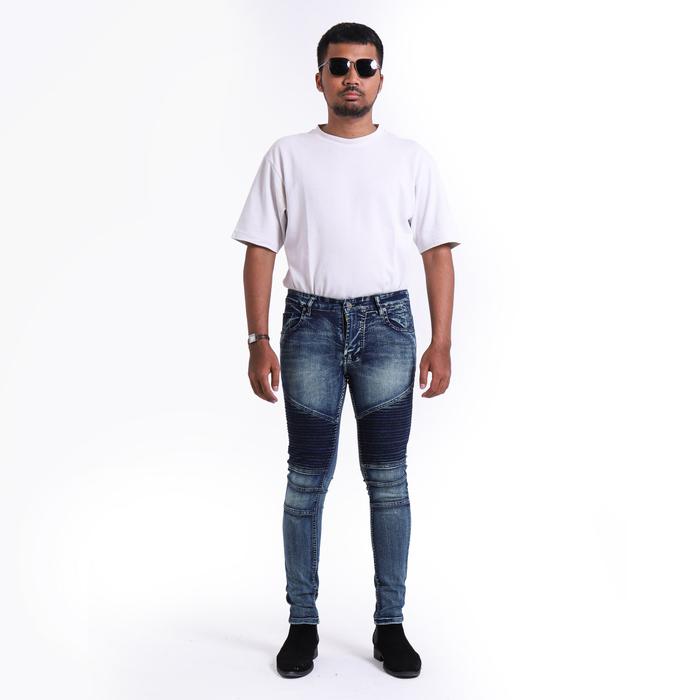 Weird Jeans - Biker Blue Indigo - Celana Biker Jeans Pria Slimfit Strech Denim Biru Nyaman - Blue indigo, 28