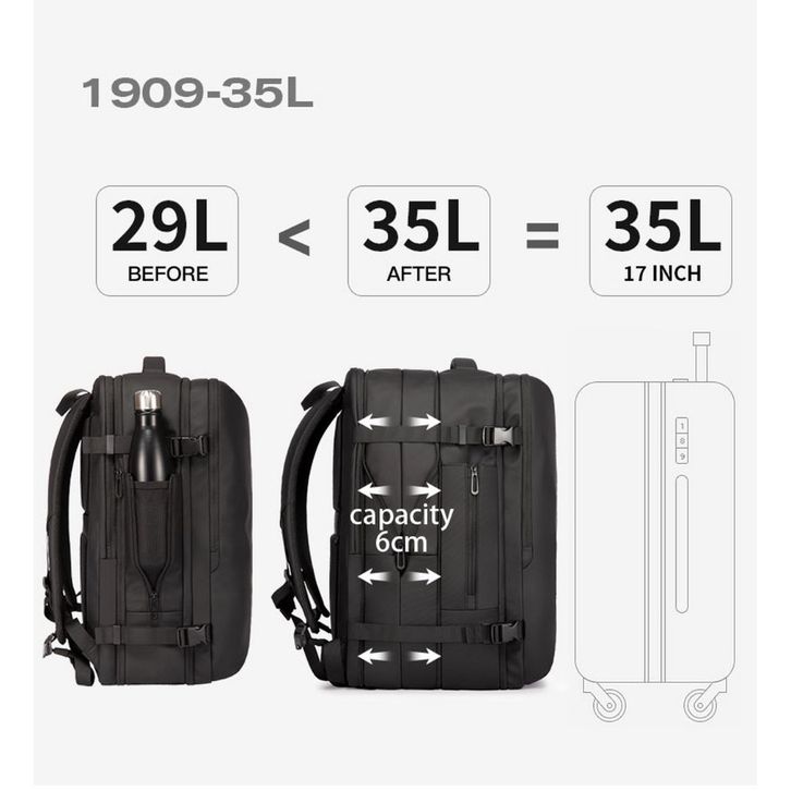 Bange BG1909 Tas Ransel Laptop Backpack Bag Expandable 35L 15.6 Inch - Hitam Kecil