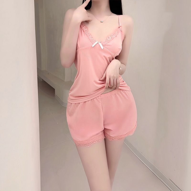 UNINICE [Pengiriman Rahasia] Setelan Piyama Seksi dengan Renda, Dua Potong Tanktop Katun