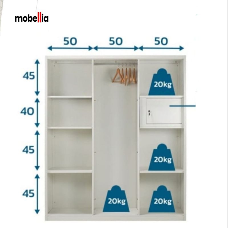 lemari besi pakaian 3 pintu sliding lemari baju besi