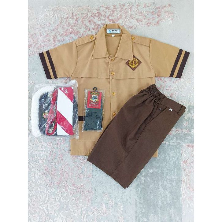 Setelan Seragam Sekolah Sd Pramuka Siaga Anak Laki-Laki Lengan Pendek Kelas 1-6 Aksesoris Pramuka