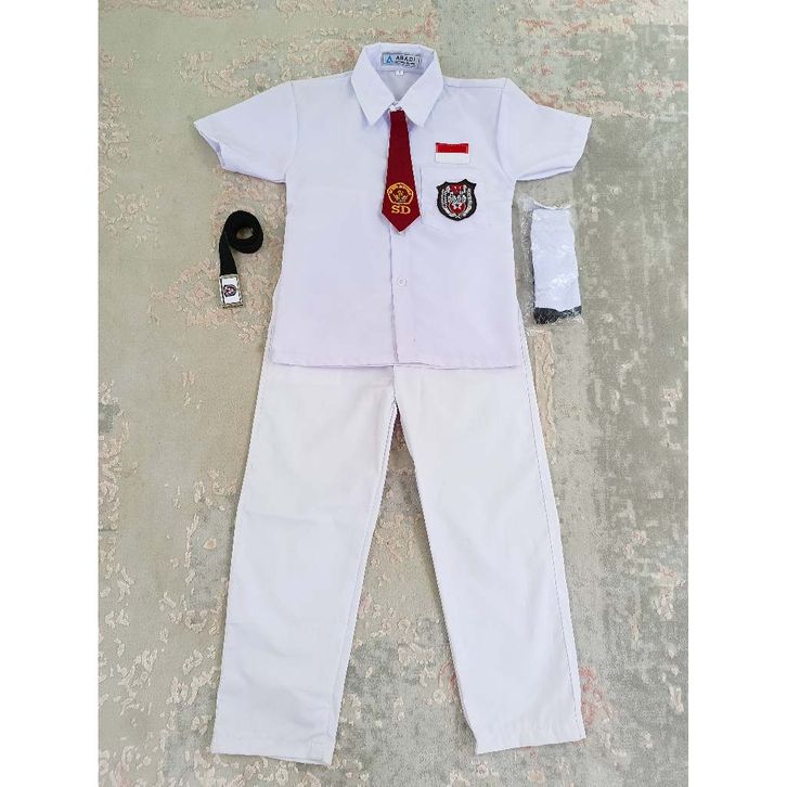 Setelan seragam sekolah SD putih putih laki lengan pendek panjang