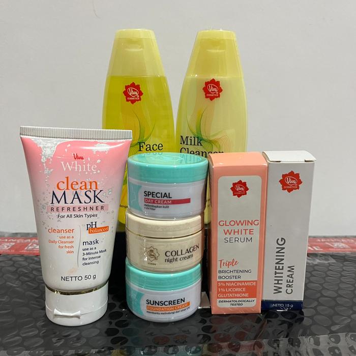 Viva Paket 8in1 Skincare Series Lengkap isi 8 pcs Perawatan Kulit Kusam Flek Berjerawat Mencerahkan