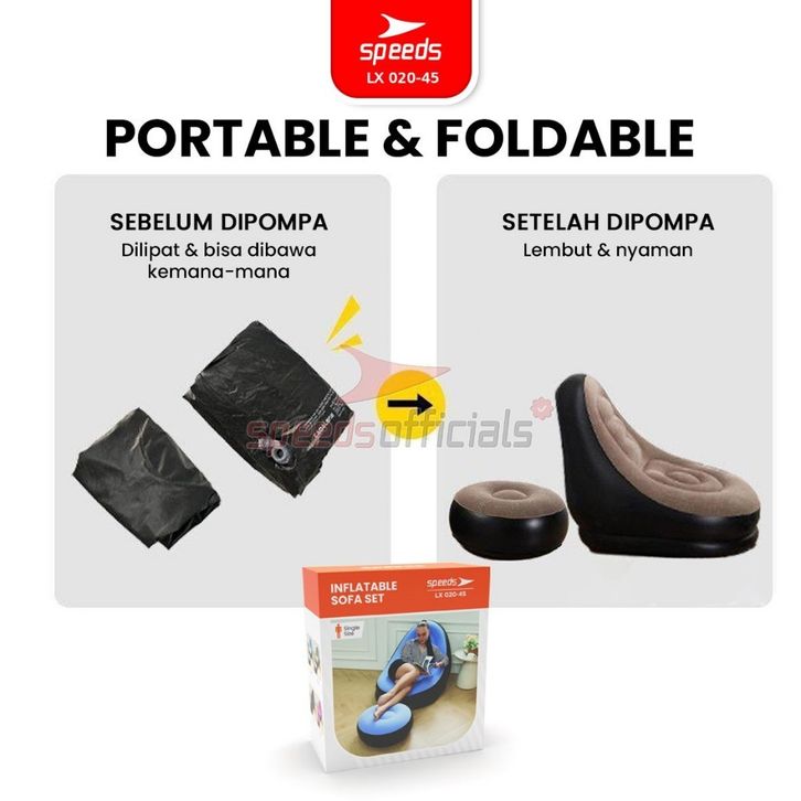 ORIGINAL SPEEDS Sofa Angin Beanbag Squishy Jumbo Inflatable Sofa + Stool Tiup Lazy Bag Outdoor Indoor Lay Bag