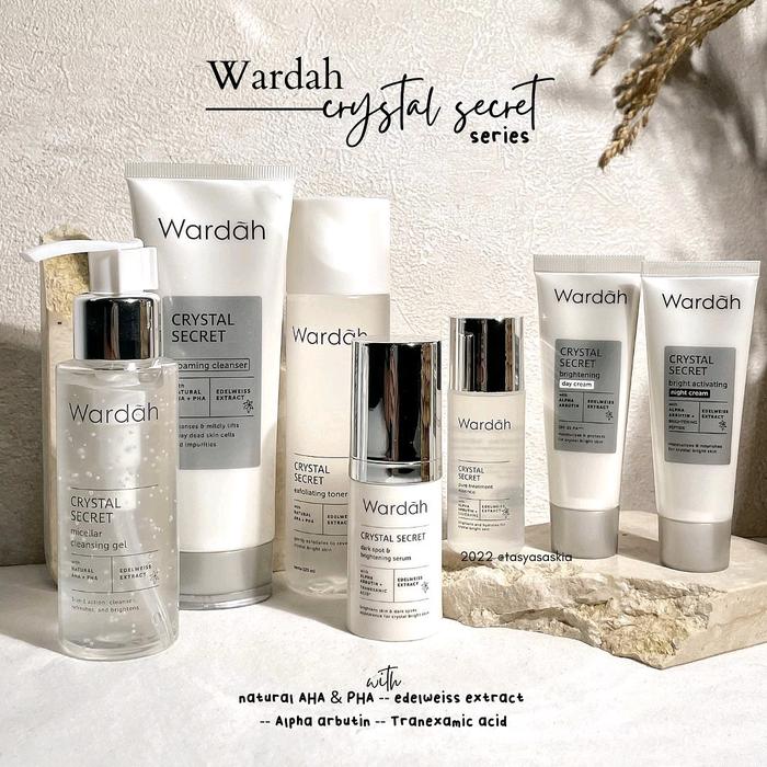 Paket Skincare Wardah Crystal Secret Starter Kit Brightening Serum Day Cream Essence Facial Wash