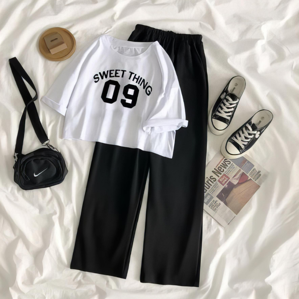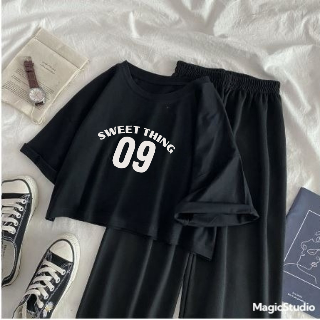 Choice Ali - Baju Setelan Kekinian Atasan Crop Top Lengan Pendek Dan Celana Kulot Sweet Thing 09
