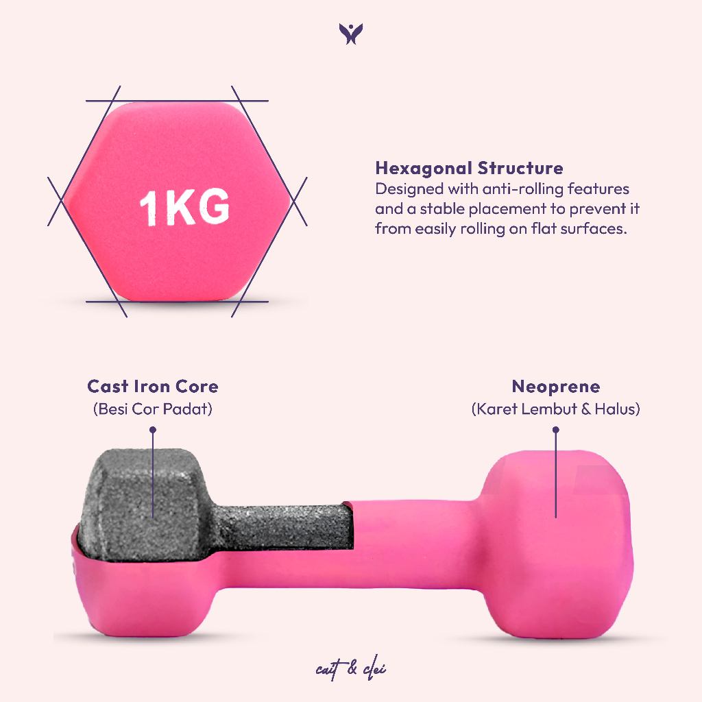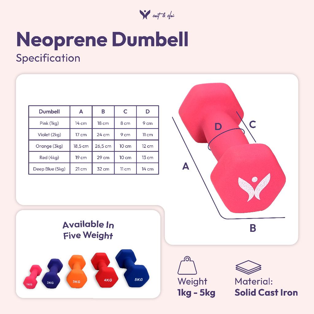 CAIT & CLEI Neoprene Dumbell | Barbel Neoprene Gym & Fitness | 1 2 3 4 5 KG | Dumbell Gym wanita