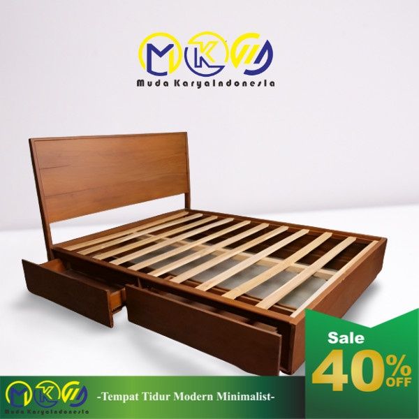 Tempat Tidur Minimalis Laci Kayu Jati Dipan Sandaran Laci