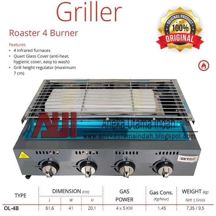 GETRA OL-4B OL4B OL 4B Griller Pemanggang Komersial 4 Tungku - Burner BBQ - Panggangan Sate Steak Sosis Ayam Bakar Dll