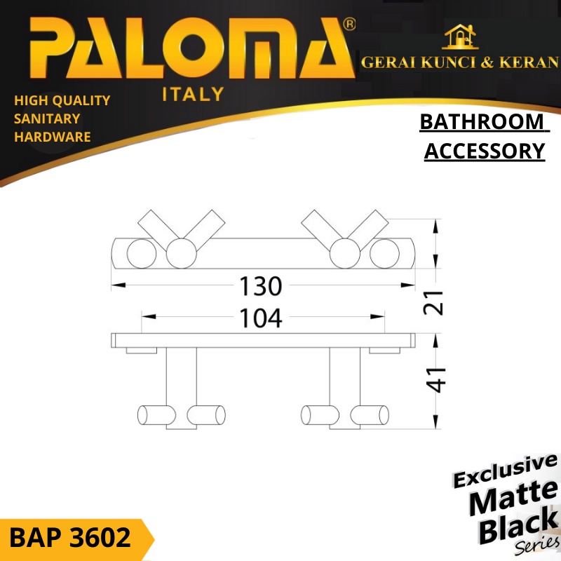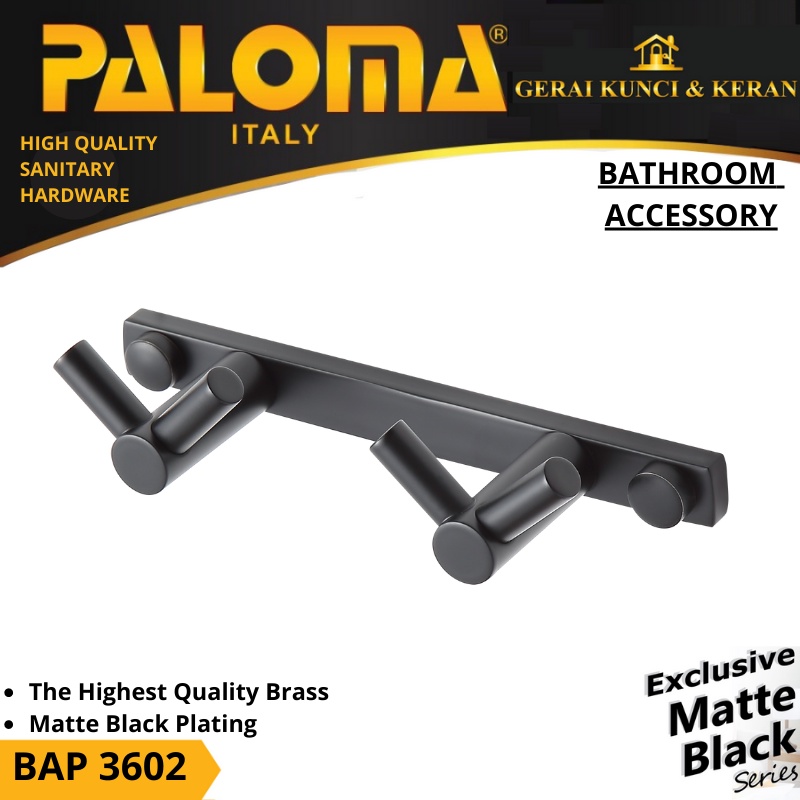 PALOMA BAP 3602 Kapstok Gantungan Baju Handuk Rak Hanger Mandi 4 Kait Hitam Black
