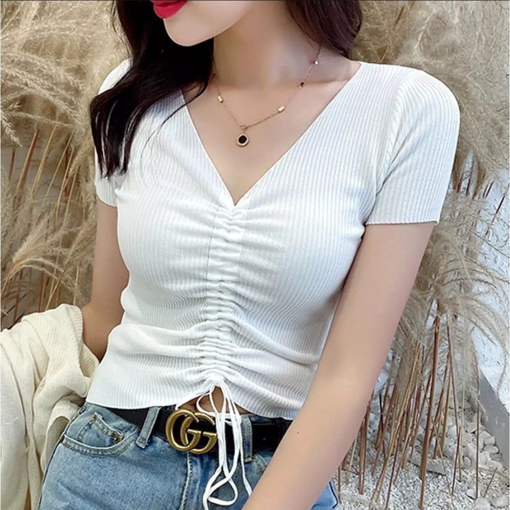 Villing Serut RIB | Atasan Wanita Crop Top Vneck Serut