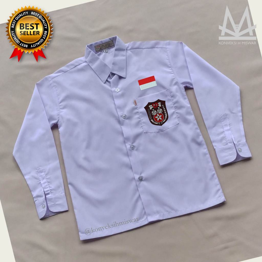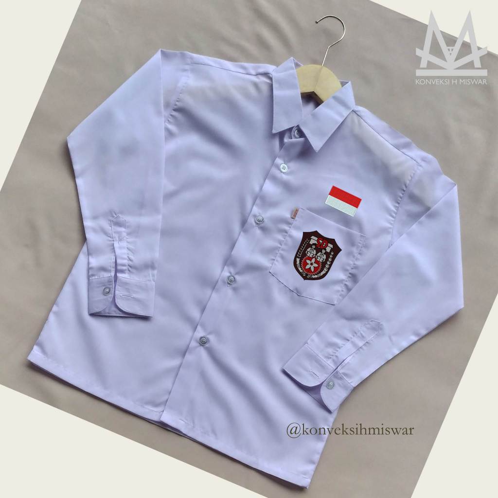 Seragam Sekolah SD - Baju Kemeja Putih Lengan Panjang BET OSIS SD Bendera Merah Putih - Oxford TC