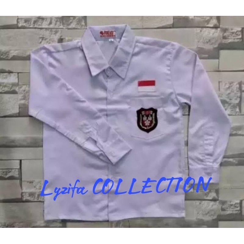 baju seragam sekolah SD atasan kemeja putih LENGAN PANJANG +badge kain OXSFORD SARIWARNA by lyzifa