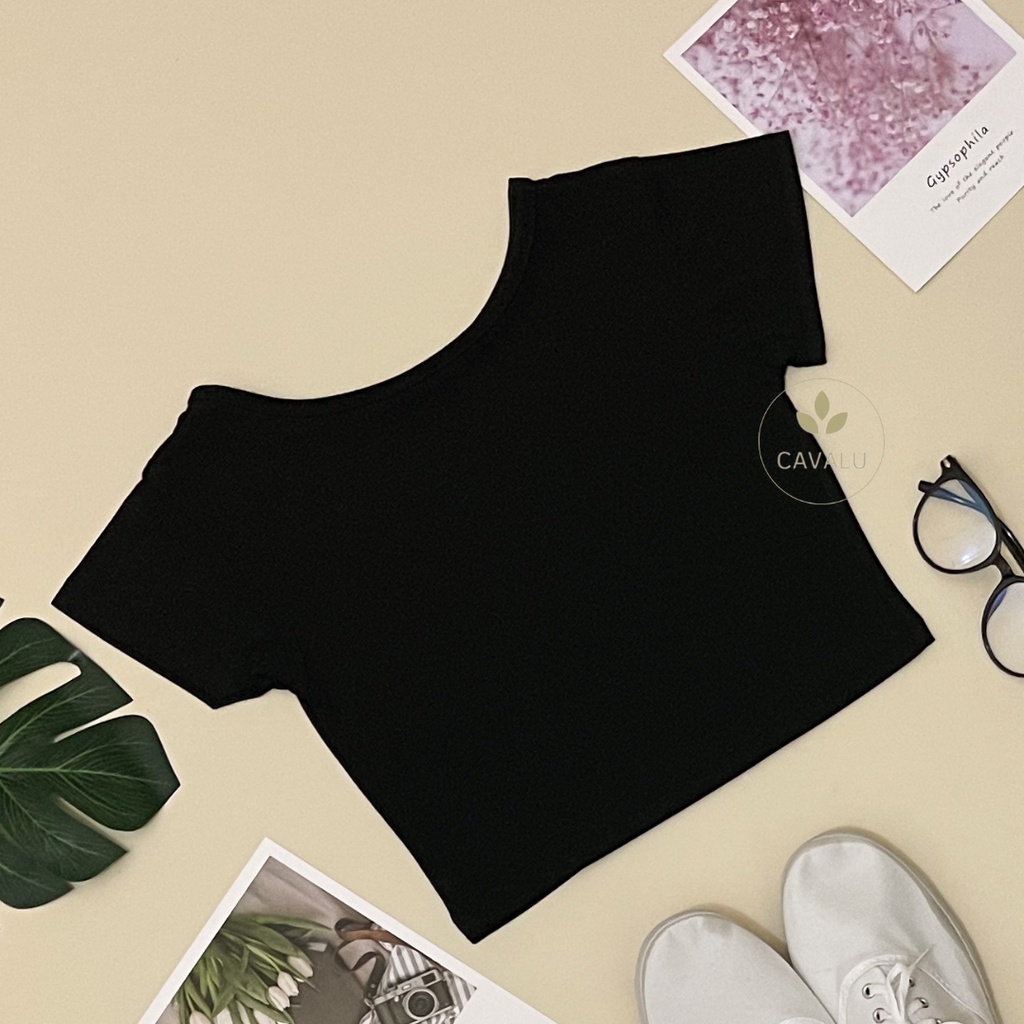 CAVALU Basic Korean Crop Top Kaos Polos Wanita Crop Tee Korea Casual Baju Atasan Wanita 052