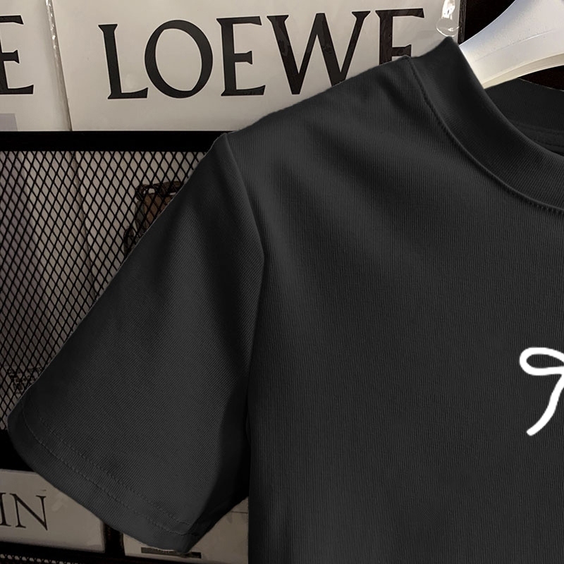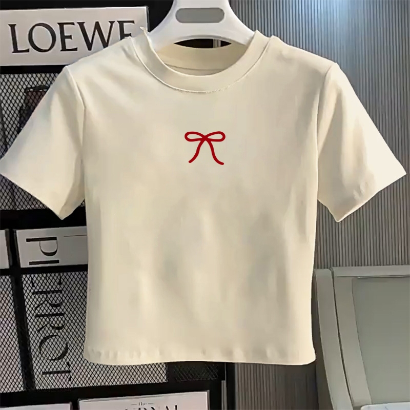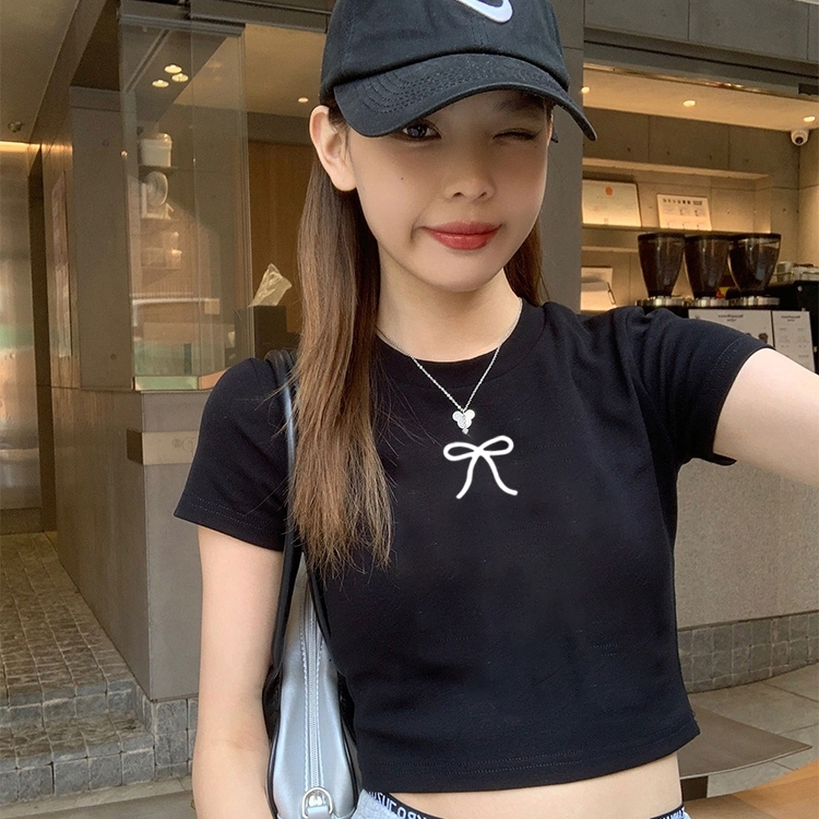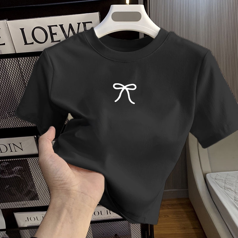 DSSTORY T-shirt Crop Top y2k Lengan Pendek Baju Kaos Crop Wanita | Korean style fashion simple butterfly print | Baju Atasan Wanita Terbaru Croptee Hitam Korea 5.30