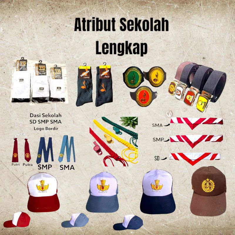 Perlengkapan ATRIBUT Sekolah LENGKAP, Dasi, topi, gesper Kaos Kaki Sekolah