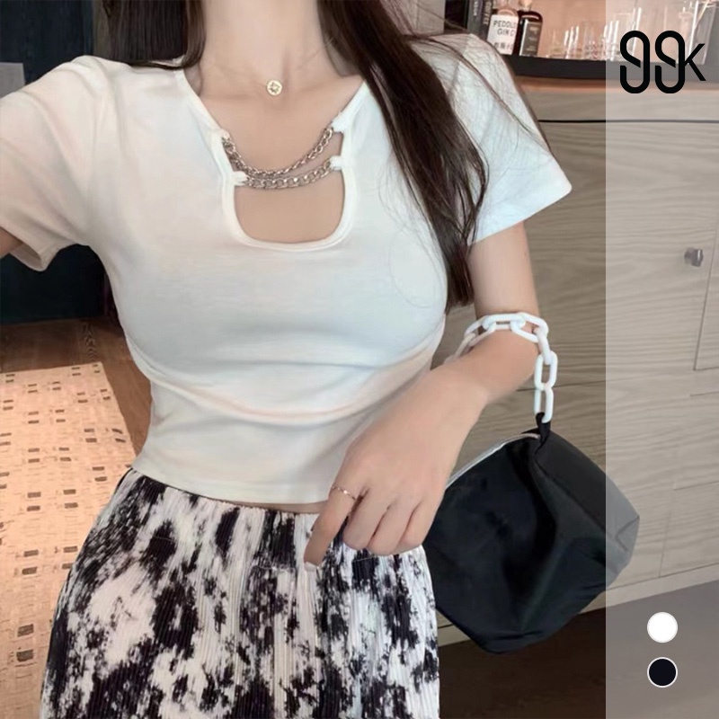 Chain Front Short Sleeve Crop T-Shirt 2212 (S/M/L/XL)