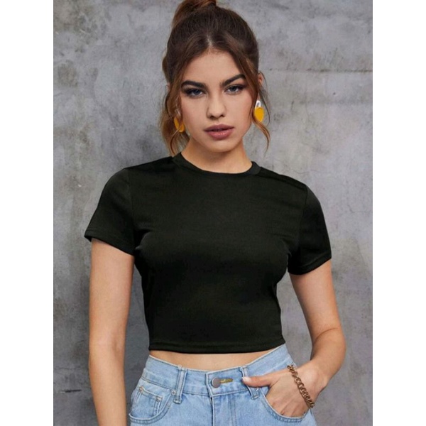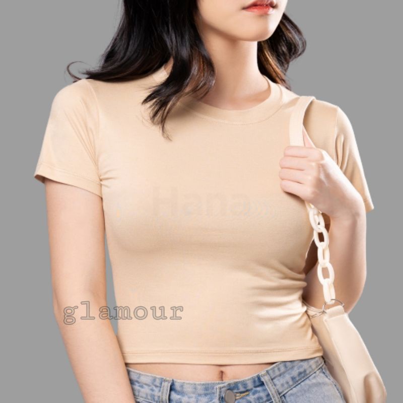 Glamstudio - Crop Top Polos Kaos Crop Tee Wanita Slim Fit CT 001 (S M L XL)