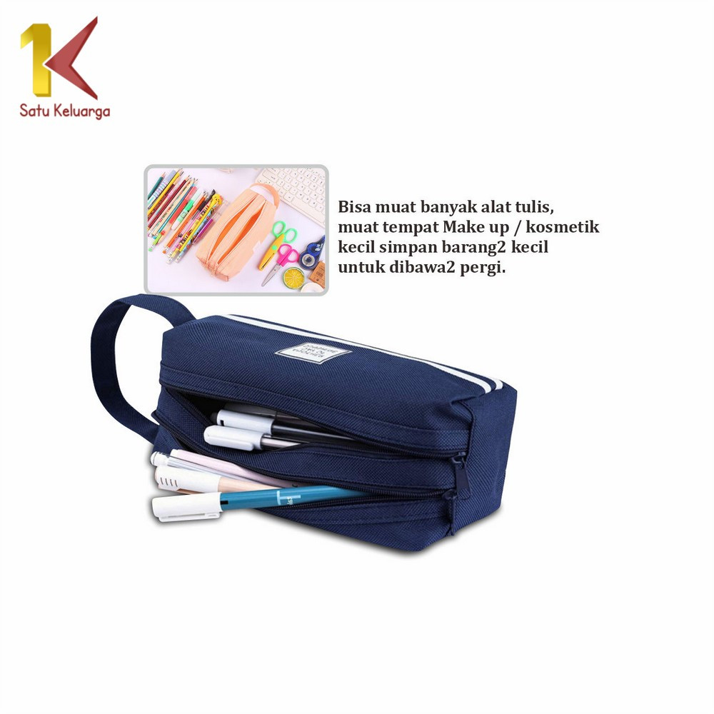 Satu Keluarga Tempat Alat Tulis Perlengkapan Sekolah 2 Sisi A80 Kotak Pensil Tempat Bolpen Dompet Pensil Stationery / Make Up Pouch Kosmetik Travel