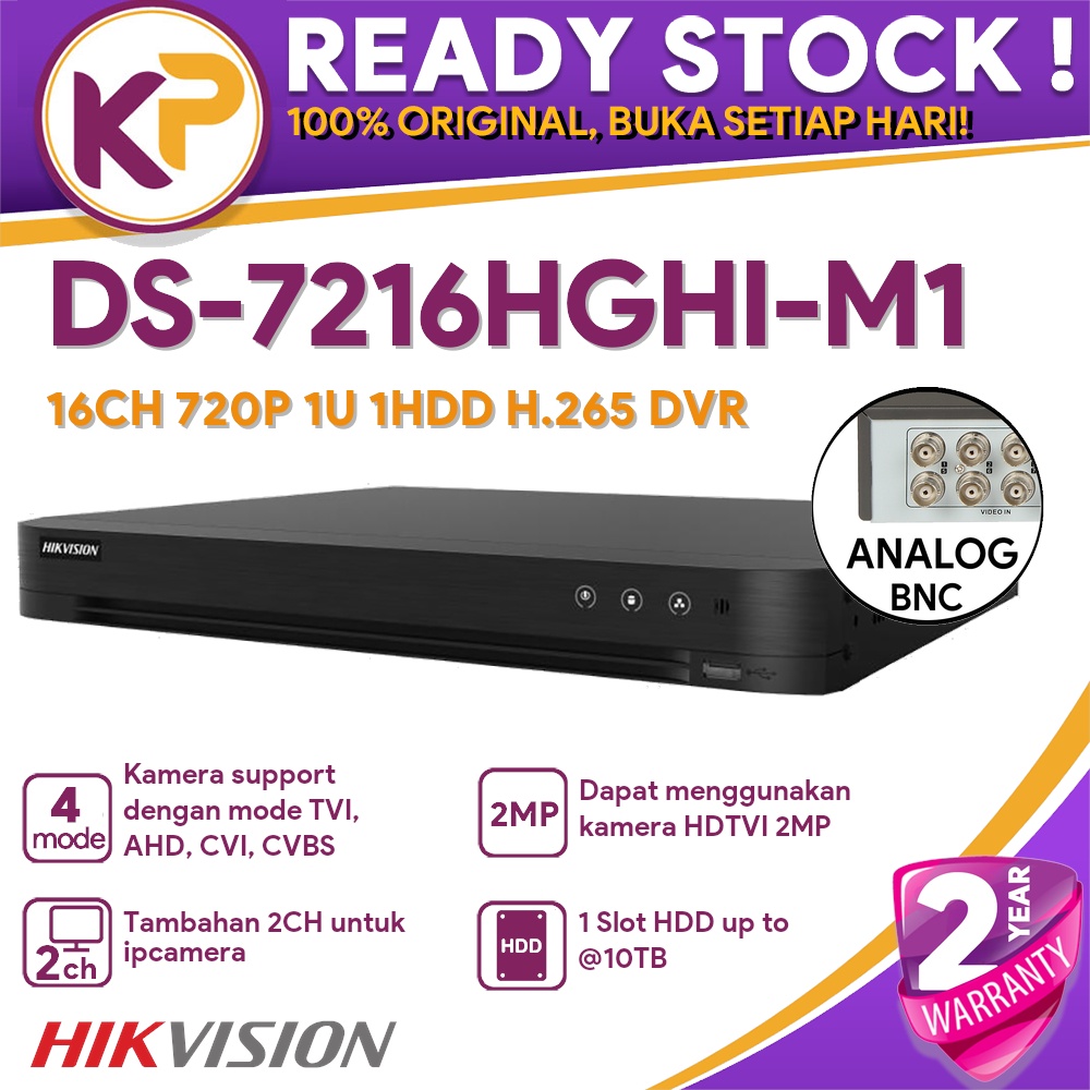 HIKVISION DS-7216HGHI-M1 16CH 720P 1U 1HDD H.265 DVR +4 IP CH RESMI