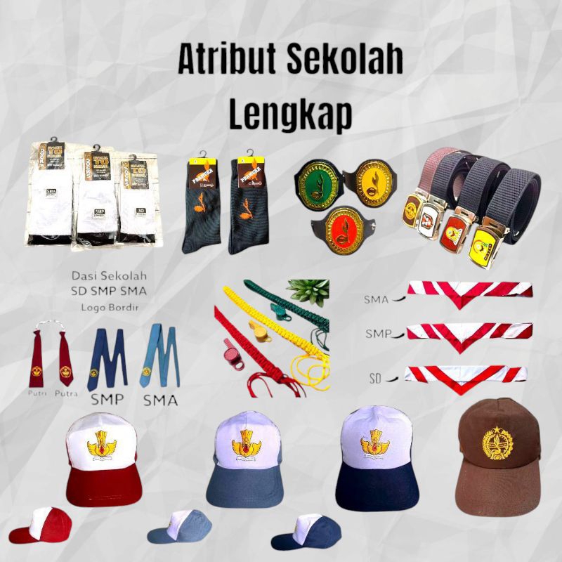 Perlengkapan ATRIBUT Sekolah LENGKAP, Dasi, topi, gesper Kaos Kaki Sekolah