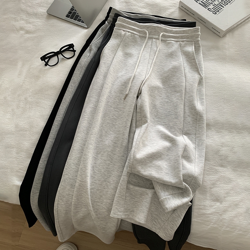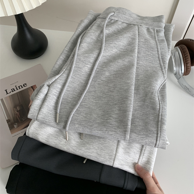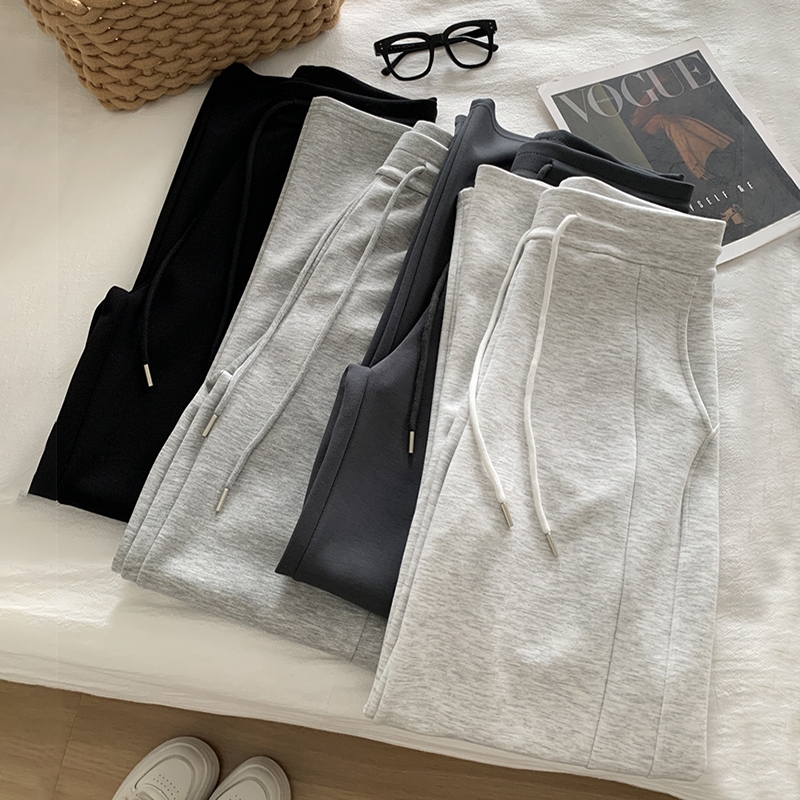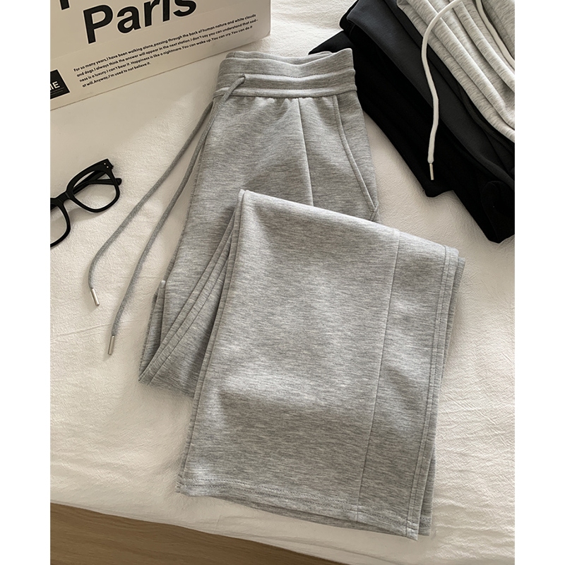 Celana Olahraga Wanita Gaya Korea Celana Lurus Kasual Serut Pinggang Tinggi Retro