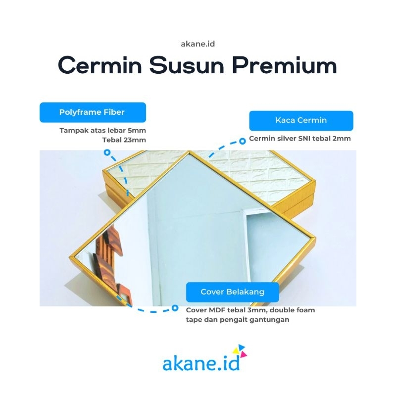 Akane Kaca Cermin Dekorasi Dinding Aesthetic Mirror 30x30cm