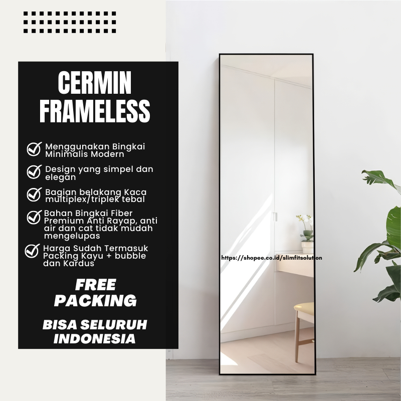 Kaca Full Body Cermin Aesthetic Frameless 35x123 Gantung Tempel Dinding Kamar Mandi R Tamu Estetik Cermin Standing M