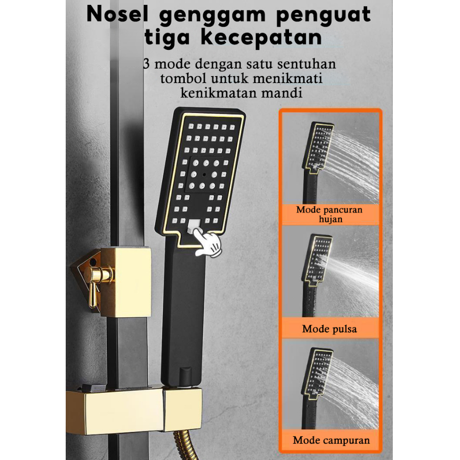 Shower Mandi Set 4 Fungsi Panas-Dingin Dengan Faucet / Hitam Kepala Shower /Shower Kamar Mandi 1 Set