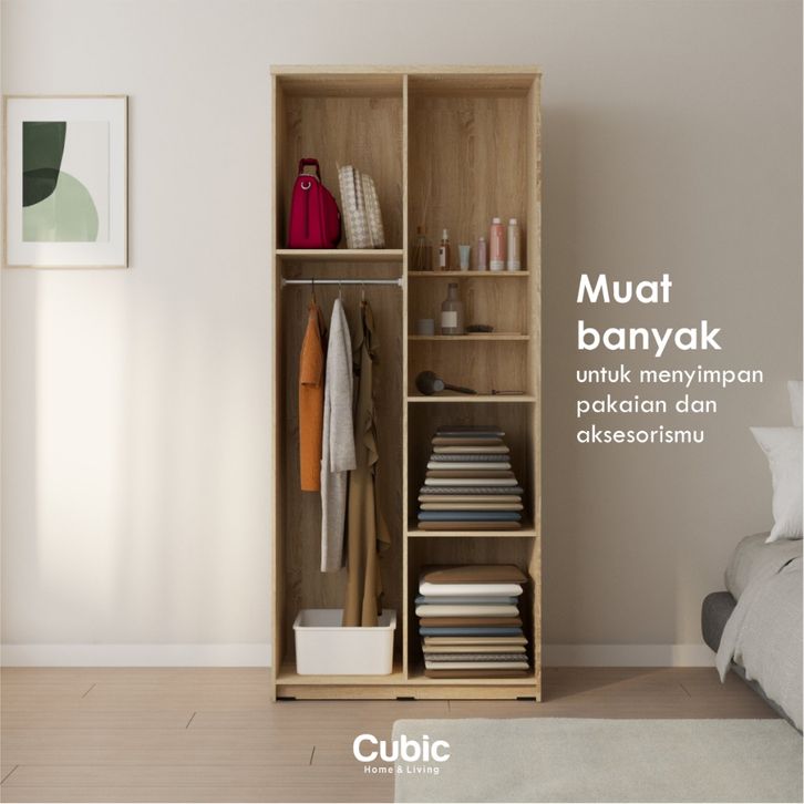 Cubic Lemari Pakaian Minimalis / Lemari Baju 2 Pintu / LUNA LPM 201