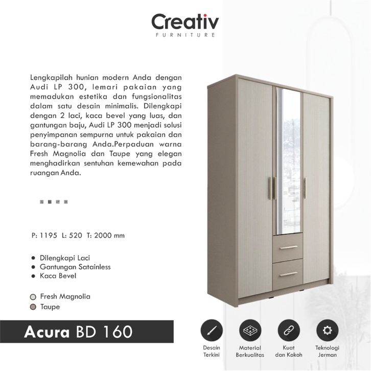 Creativ Lemari Pakaian Minimalis / Wardrobe Baju 3 Pintu / AUDI LP 300