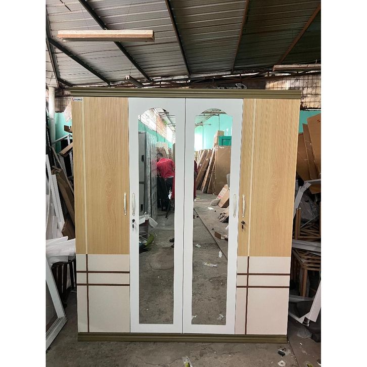 Citra Furniture ® Lemari Pakaian Besi 4 Pintu Ayun Minimalis | Lemari Baju Swing Wooden Series
