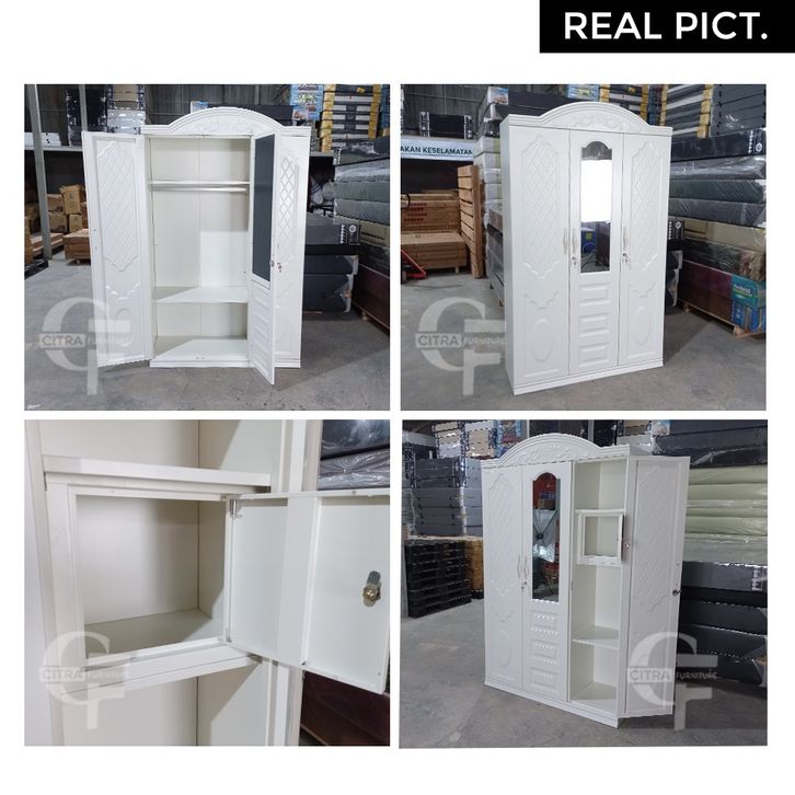 Citra Furniture ® Lemari Pakaian Besi 3 Pintu Clasik | Lemari Baju Cermin klasik CTR3