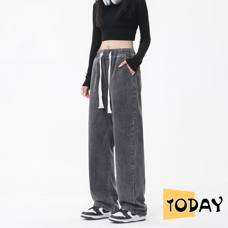 VV - Celana jeans wanita korean style celana jeans pinggang karet celana oversize wanita baggy pants celana kulot jeans premium