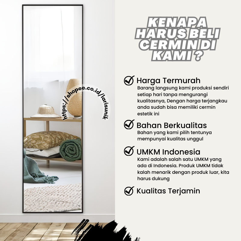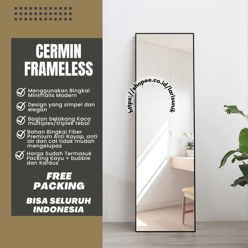 Cermin Kaca Aesthetic Frameless Full Body Gantung Dinding 35x123 Kamar Mandi Estetik Mirror Aesthetic Besar Unik Frame B