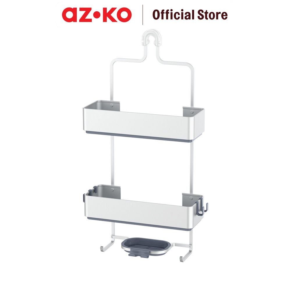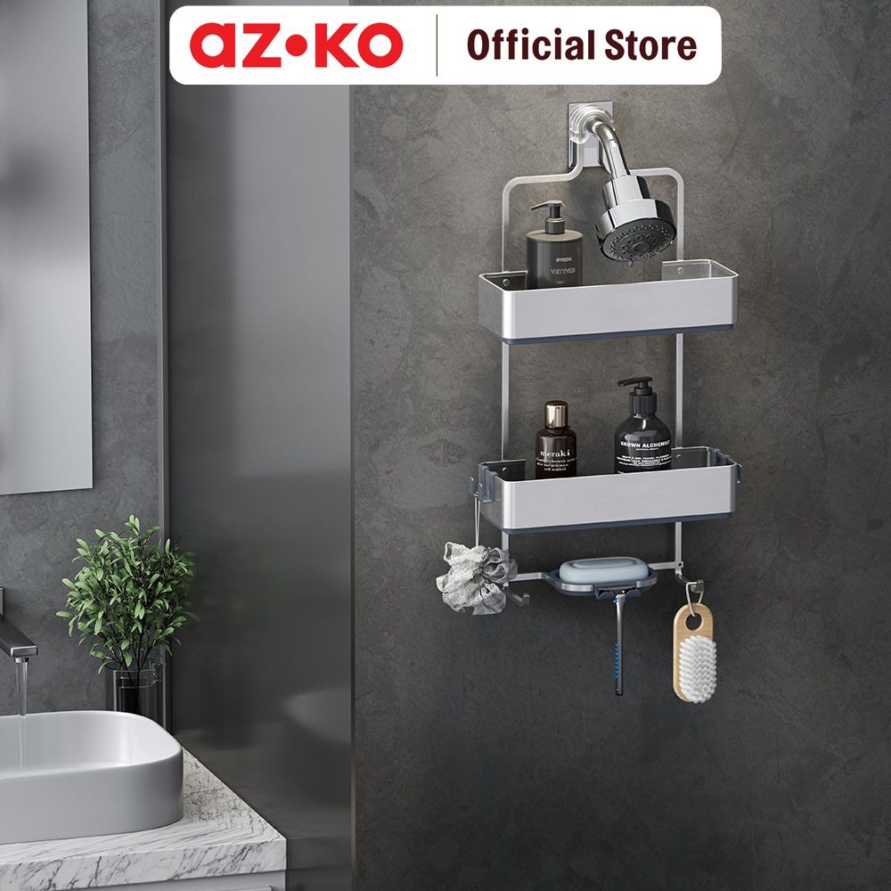 AZKO Stora Rak Kamar Mandi 2 Tingkat Aluminium Wk820431 - Silver Shower Wall Shelf Organizer Tempat Sampo Sabun Rak Temb