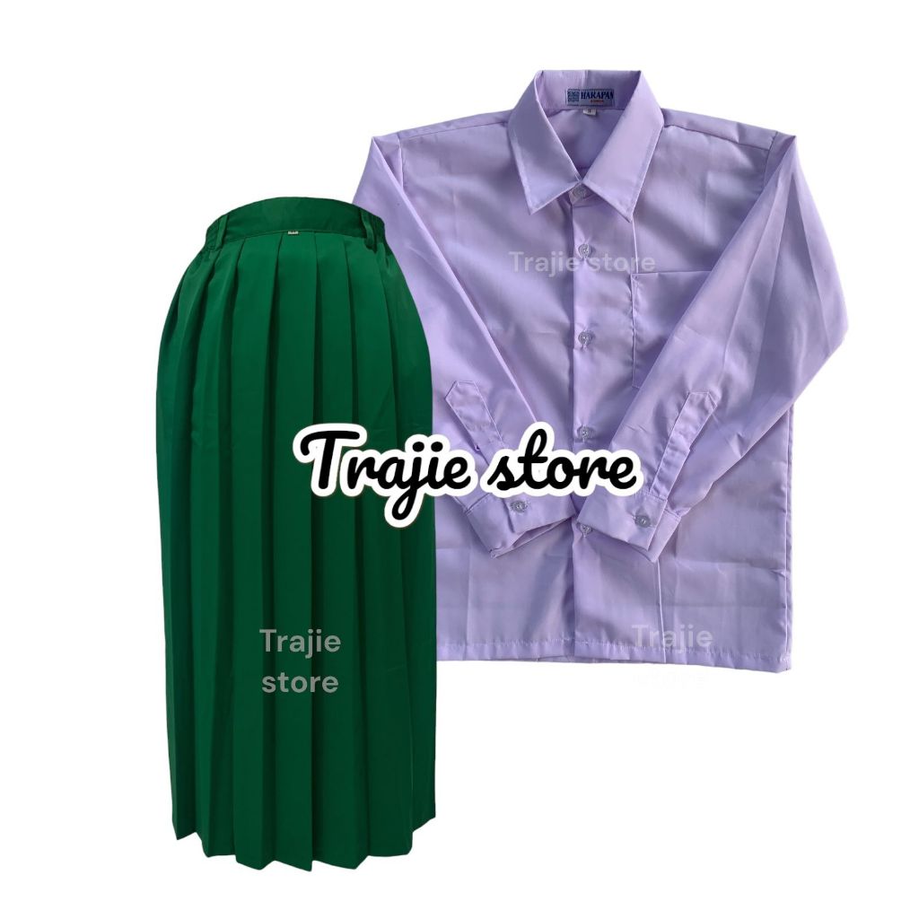 Setelan Seragam Sekolah SD/MI Putih Hijau Laki-Laki Perempuan Baju Celana Rok Rempel Lengan Panjang