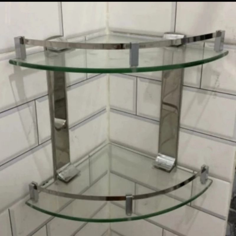 Rak sabun sudut kaca 2 susun / Rak sabu sudut kaca serbaguna